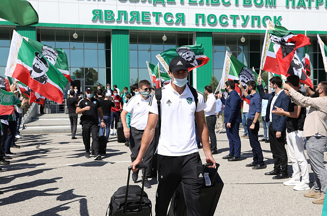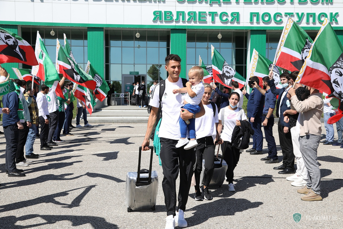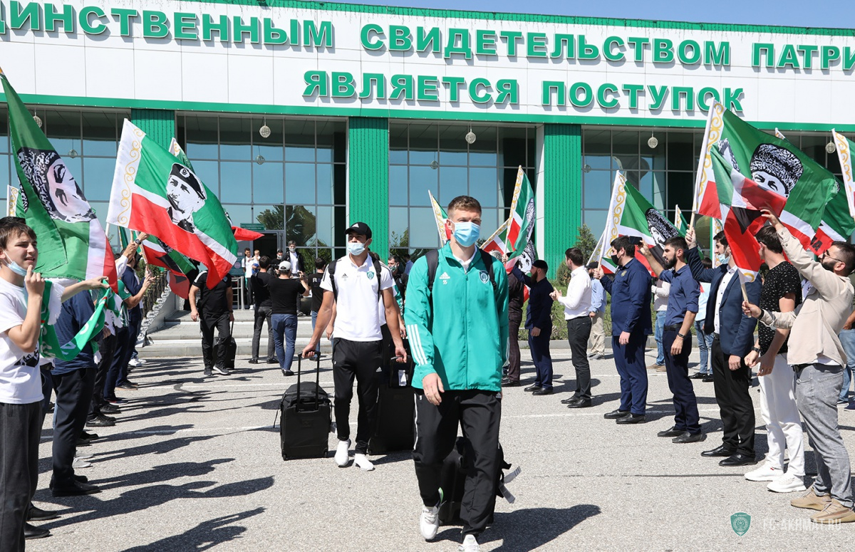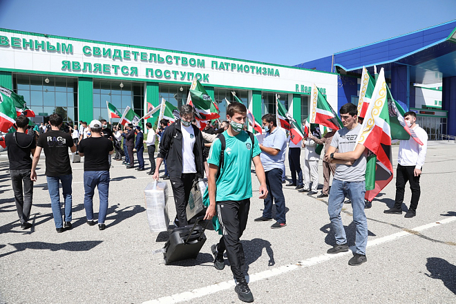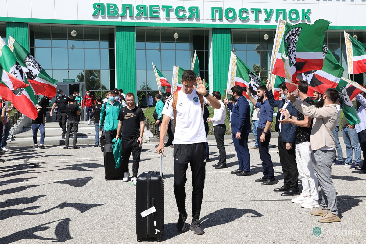 Болельщики встретили ФК "Ахмат" в аэропорту Грозного