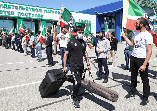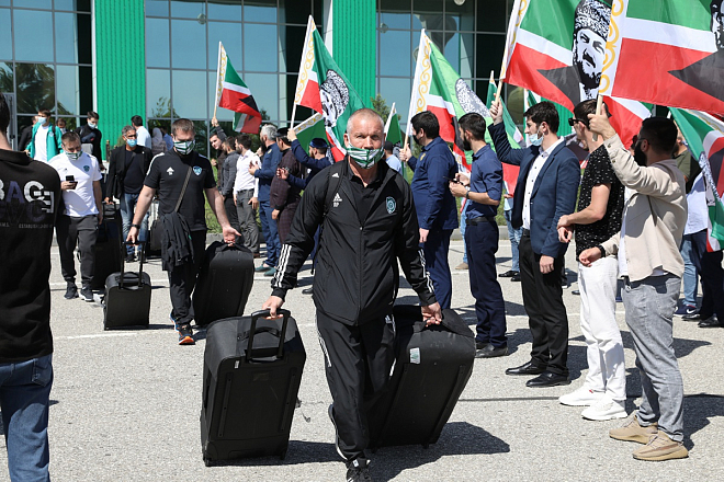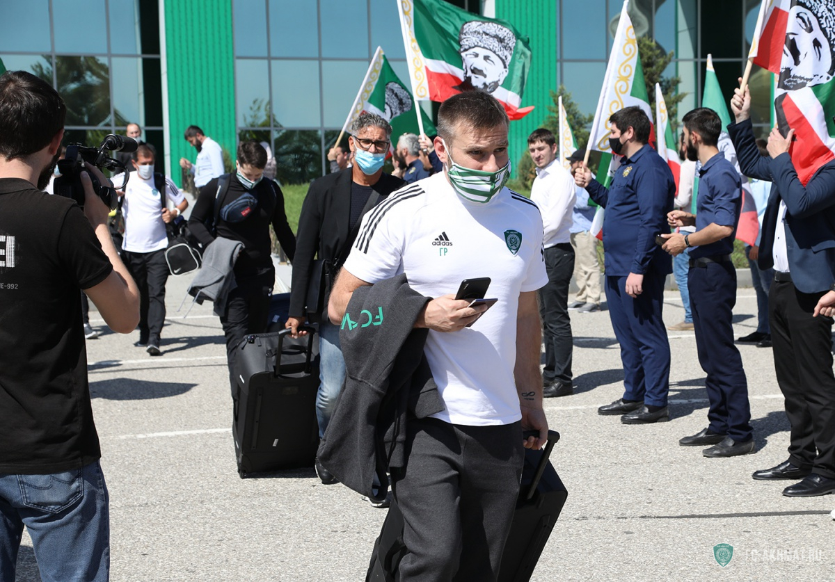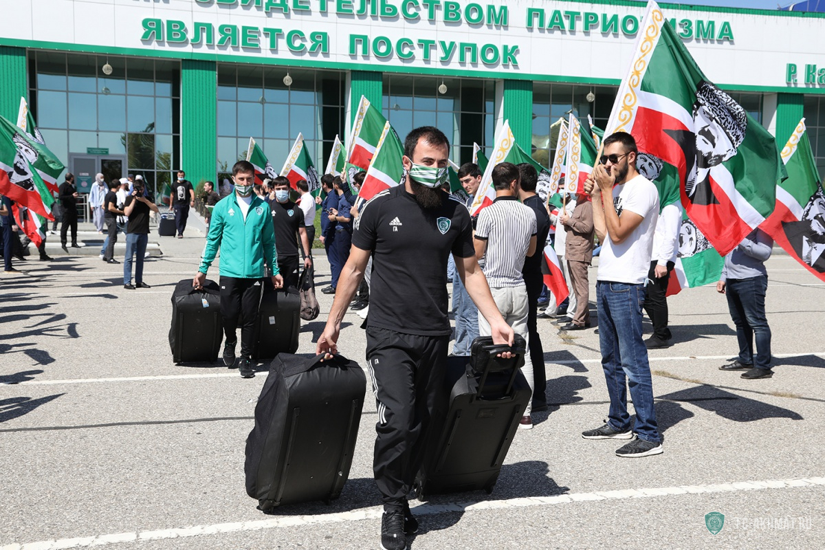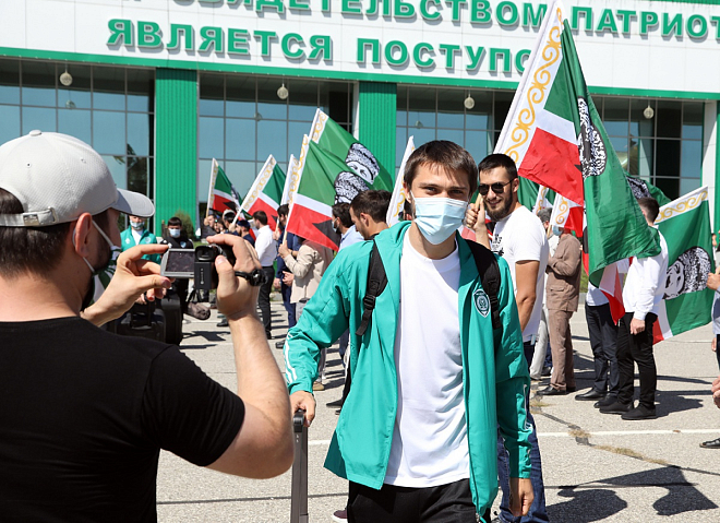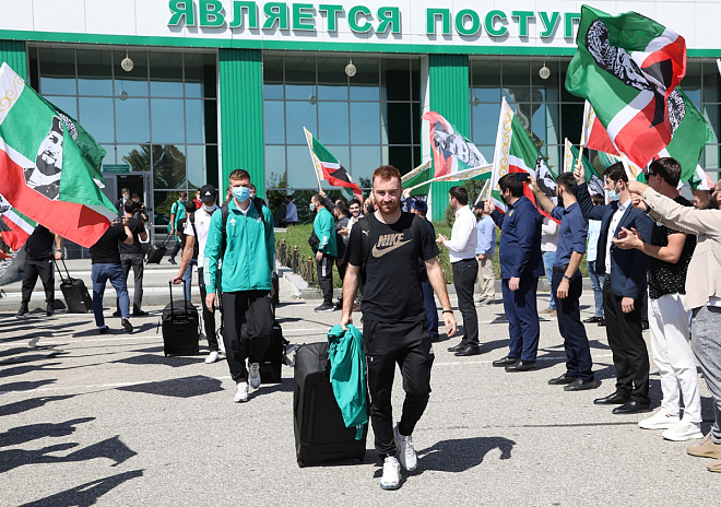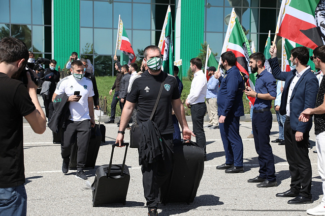 Болельщики встретили ФК "Ахмат" в аэропорту Грозного