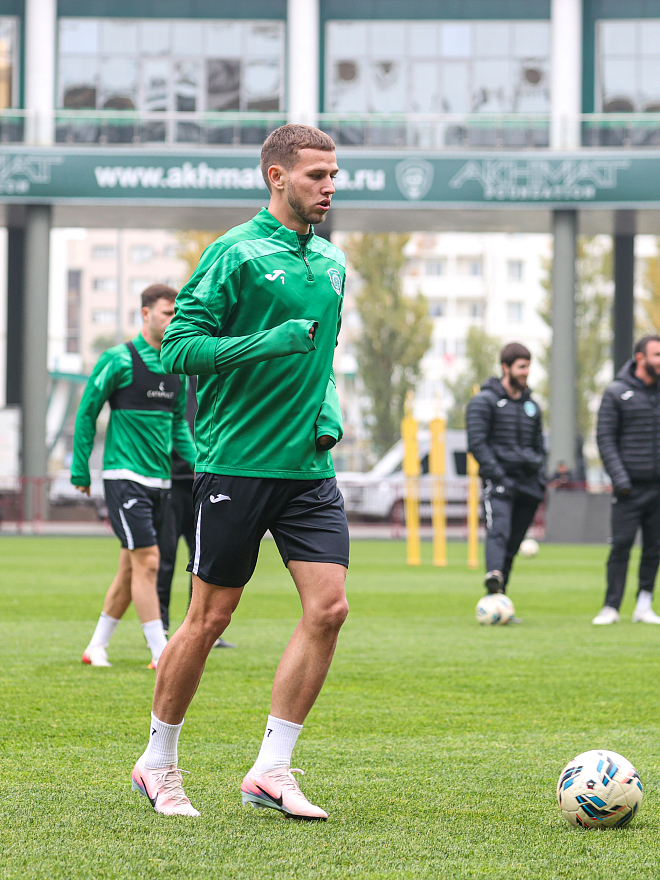 В субботу, 8 ноября, подопечные Станислава Черчесова провели предматчевую тренировку на «Ахмат-Арене». Здесь уже завтра «Ахмату» предстоит встреча 15-го тура Мир РПЛ со «Спартаком».