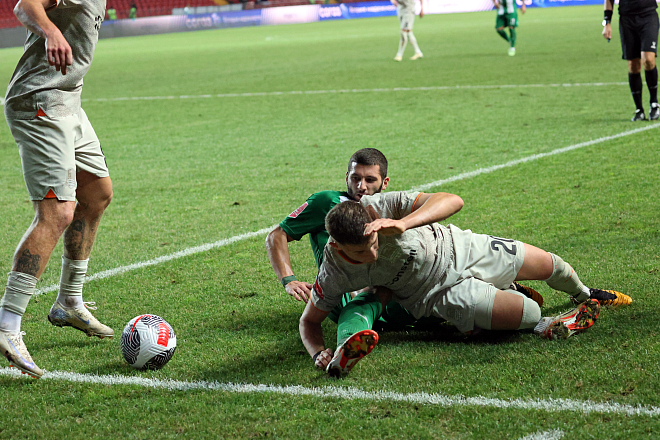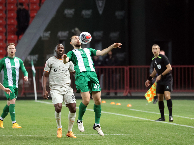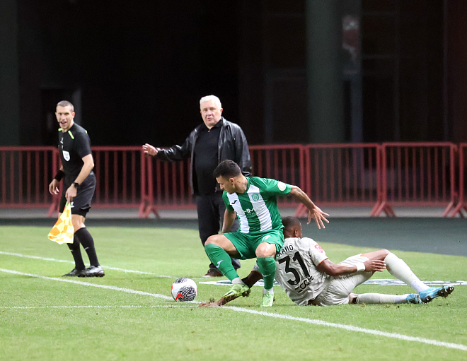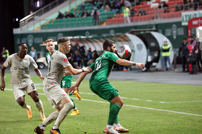 В хорошем темпе, без раскачки начали игру команды. Талал забил уже на 16-й минуте, но ВАР усмотрел у марокканца "вне игры". Но через минуту грозненцы забили уже чистый гол, который невозможно было отменить. Сделал это Надер Гандри. На 35-й минуте Кайо очевидным нарушением правил остановил в своей штрафной Талала. Почему не зафиксировал фол арбитр, и почему промолчал ВАР - не понятно. Тем не менее, под занавес тайма «Ахмат» второй гол забил. Ковачев точным ударом в дальний угол не оставил шансов Дюпину для спасения.