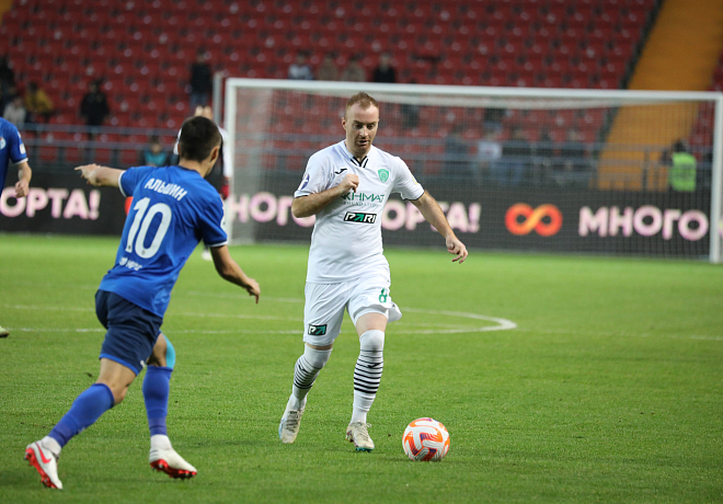 Грозненцы открыли счет в матче на исходе первого тайма, в дальний угол точно пробил Tодорович.