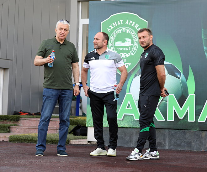 Завтра, 30 августа, «Ахмат» на домашней арене сыграет с «Крыльями Советов» в третьем туре FONBET Кубка России. Команда готовится к игре, и провела сегодня вечером предыгровую тренировку. На занятии коллектива побывал вице-президент, генеральный директор клуба Ахмед Айдамиров.