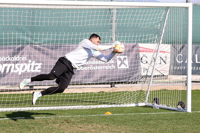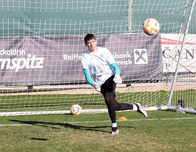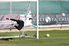 Позади очередной рабочий день на сборах. Вратарский цех в дружном составе работает, как говорится, не покладая рук. Вместе с опытными голкиперами свой первый сбор в взрослом коллективе проводит вратарь молодежной команды Яхья Магомедов.