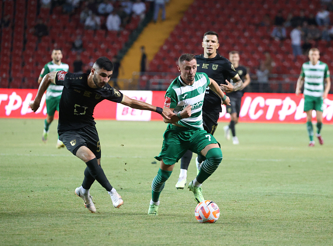 Начали матч команды, как говорится, без разведки. Хозяева взяли инициативу в свои руки, создали немало предпосылок для создания голевых моментов. Удар Бериши в дальний нижний угол был опасным, Латышонок с трудом отразил мяч. Дальше были удары Ильина, Дивановича, Ковачева. А гол пришел оттуда, откуда не ждали: после дальнего удара игрока гостей мяч угодил в крестовину. Футбольный снаряд подобрал Барков, и после его прострела Семенов срезал мяч в свои ворота. Защитник пытался помешать форварду сыграть первым, и его вины в пропущенном голе точно нет. Тут больше не лучшим образом сыграли другие игроки, позволив в конце тайма гостям немного похозяйничать в своей штрафной.